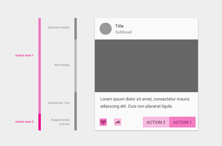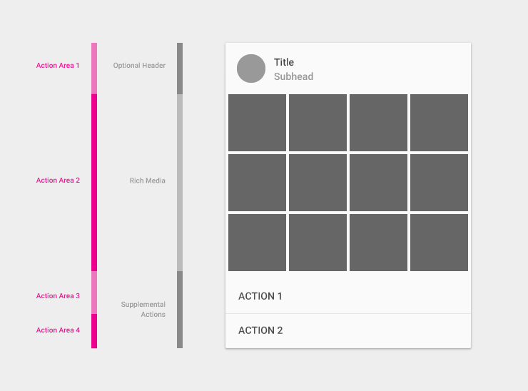 尽管卡片可以提供多种操作,UI控制,和弹出菜单,谨慎使用并且记得卡片是通往更复杂详细信息的入口。