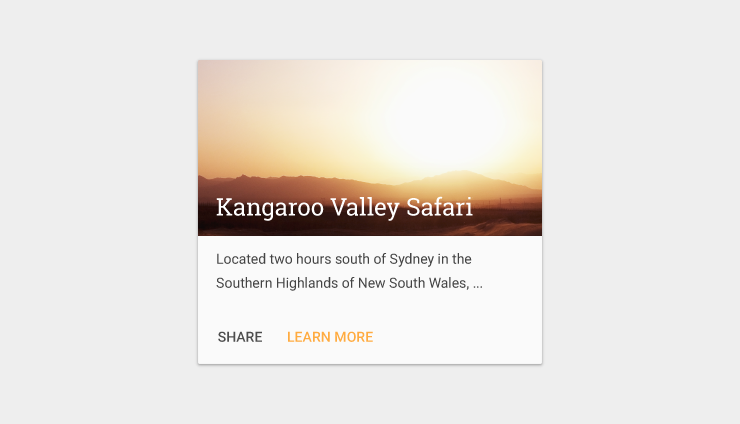 卡片是用来显示由不同种类对象组成的内容的便捷途径。它们也适用于展示尺寸或操作相当不同的相似对象,像带有不同长度标题的照片。