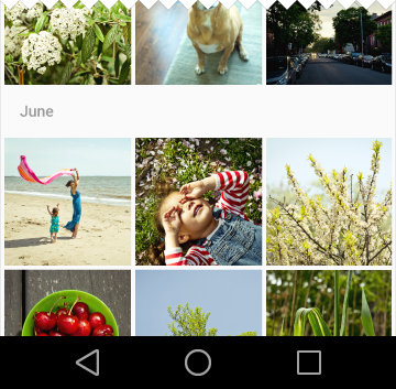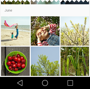 - 在指定的网格中,所有瓦片的动作是一致的。比如,在单个网格中,对于所有瓦片的主要动作可以用于查看图片的详细信息。