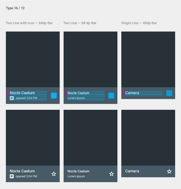 仔细考虑网格列表中的次要文本是否需要使用多列瓦片,因为大的瓦片可能会造成很大的空间浪费。
