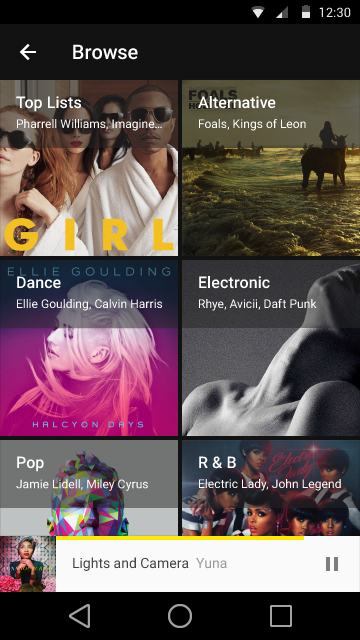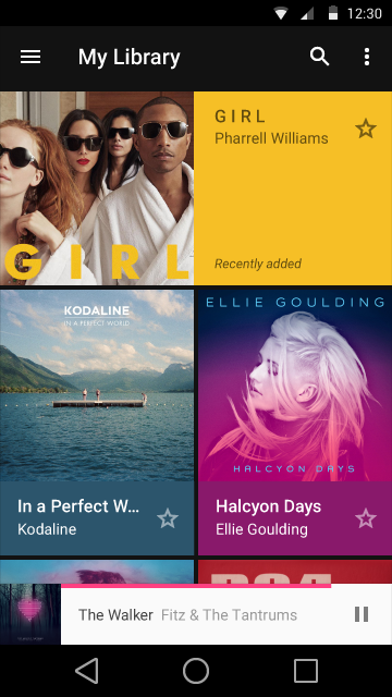 当水平空间受限时,网格列表不会转换为列表。网格列表与列表在强调不同数据类型的不同结构:图片优于文本与文本优于图片的区别。