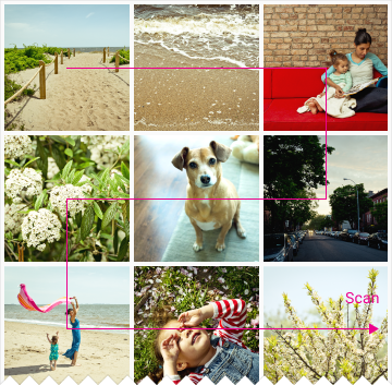 网格列表最适合用于同类数据(homogeneous data type),典型的如图片,并且对可视化理解(visual comprehension )和相似数据类型的区别进行了优化。