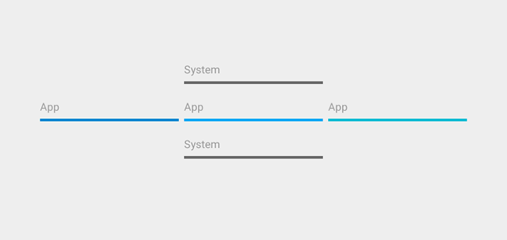 取决于情境, 系统元素有可能不出现在某一个 app 里(比如在熄灯模式中),但当系统元素存在时,他们在空间上具有相对的优先权。这可确保,比如,一个系统对话框总出现在当前 app 的上面。